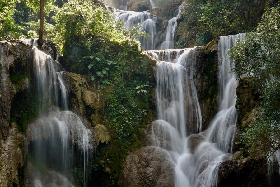 光西瀑布是一個瀑布群,位于瑯勃拉邦以南30多公里的原始森林中,其中一處高40多米,雖然水量不大,但有一種天然的涓細(xì)之美,不同凡響。