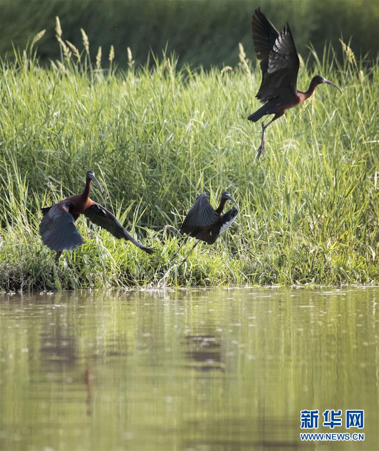 這是在漢江濕地公園飛翔的3只彩鹮(4月29日攝)。 近日,國(guó)家二級(jí)保護(hù)動(dòng)物彩鹮現(xiàn)身陜西省漢中市漢江濕地公園濂水河與漢江交匯處。 據(jù)陜西師范大學(xué)生命科學(xué)院教授于曉平介紹,彩鹮在世界上的分布比朱鹮還要少,這幾年在云南發(fā)現(xiàn)得多一些,這3只彩鹮現(xiàn)身漢江濂水河畔,是陜西首次發(fā)現(xiàn)彩鹮蹤跡。 據(jù)了解,彩鹮是國(guó)家二級(jí)保護(hù)動(dòng)物,屬鵜形目鹮科,體羽大部為青銅栗色,是珍稀鳥(niǎo)類朱鹮的“近親”,體型比朱鹮略小。 新華社發(fā)(陶本耀 攝)