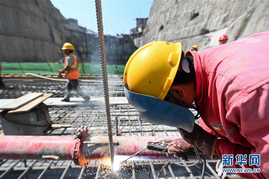 5月31日,工人在烏東德水電站的二道壩工地施工。 新華社記者陳曄華攝