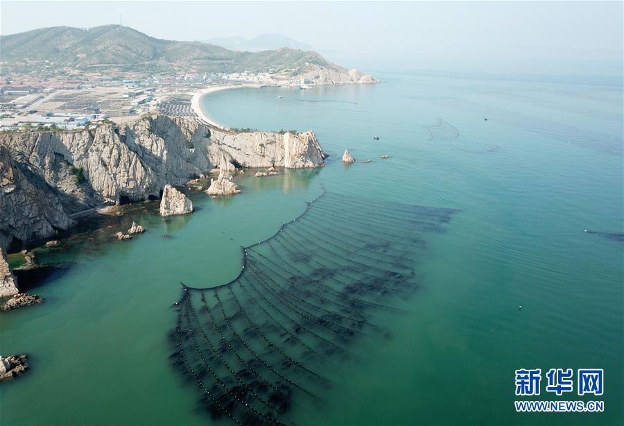 這是大欽島鄉(xiāng)附近海域的海帶養(yǎng)殖區(qū)(5月23日無人機拍攝)。新華社記者 朱崢 攝