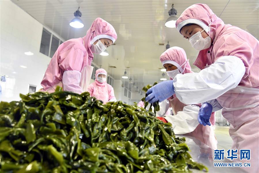 6月5日,在榮成一家水產(chǎn)養(yǎng)殖公司,工作人員在加工海帶。 近日,山東省榮成市迎來海帶收獲季。據(jù)悉,榮成市海帶養(yǎng)殖面積14.5萬畝,年產(chǎn)海帶43.3萬噸以上。 新華社記者林繁晶攝