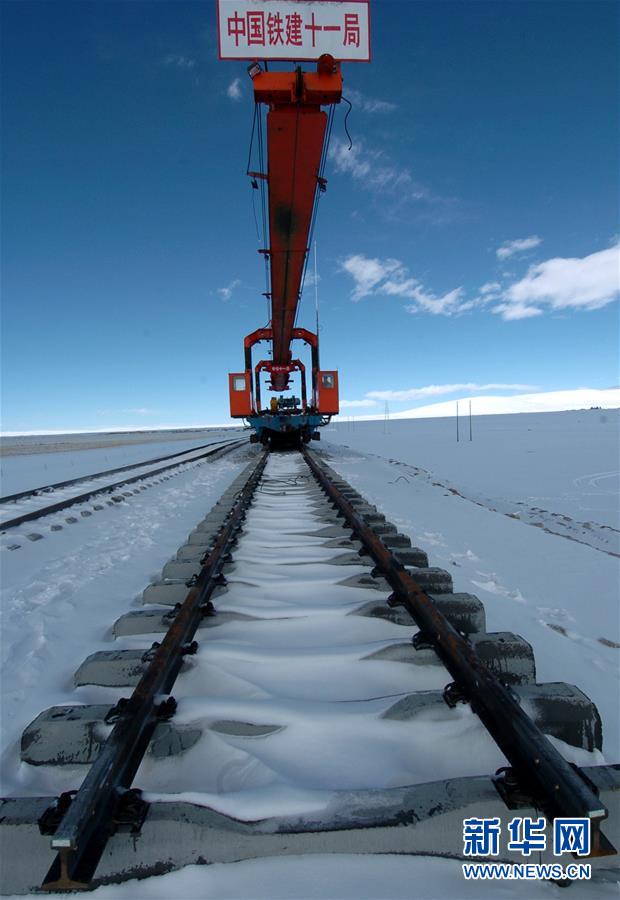 青藏鐵路在鋪軌建設(shè)中(2004年12月5日攝)。新華社記者覺果攝
