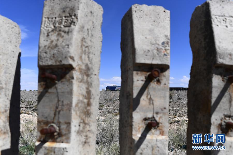 一列火車行駛在青海省海西蒙古族藏族自治州德令哈市境內(nèi)的青藏鐵路線上(2018年6月28日攝)。新華社記者張宏祥攝