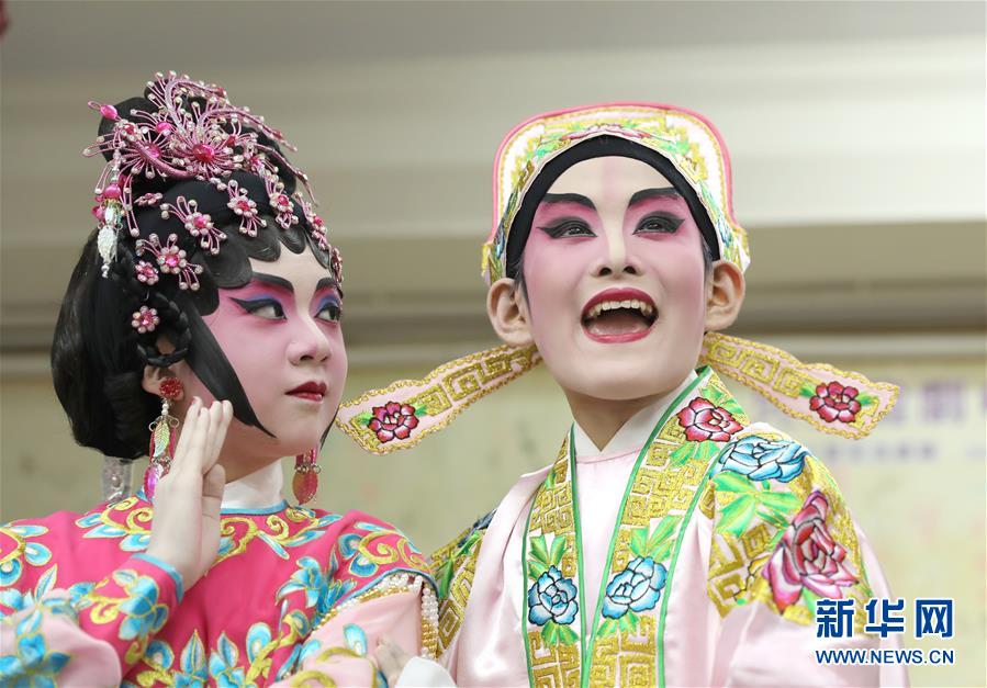 陸瑞徽(左)和利文喆在表演折子戲《艷曲醉周郎》(6月8日攝)。 聲輝粵劇推廣協(xié)會成立于2003年,是香港重要粵劇藝術(shù)團體之一,致力于向青少年推廣粵劇。協(xié)會目前有兩個初班,3個中班,一個青少年班?;泟∮址Q“廣東大戲”,表演技藝包括“唱做念打”,即唱功、身段、臺詞、武打,主要流行于廣東、廣西和香港、澳門等地區(qū)。2009年,粵劇被列入聯(lián)合國教科文組織人類非物質(zhì)文化遺產(chǎn)代表作名錄,今年正逢十周年。 新華社記者 吳曉初 攝