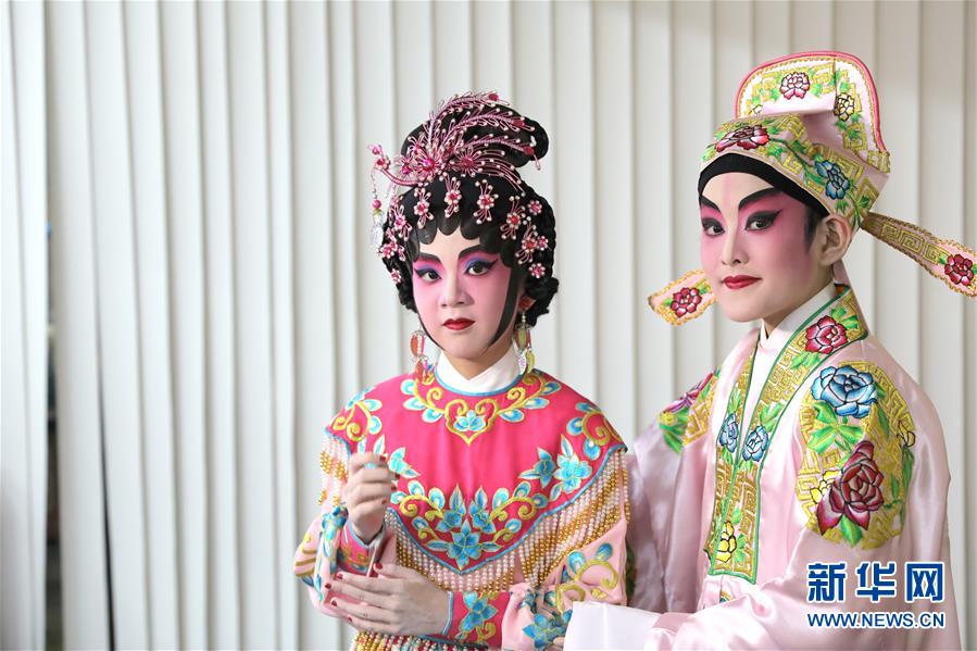 陸瑞徽(左)和利文喆在表演折子戲《艷曲醉周郎》(6月8日攝)。 聲輝粵劇推廣協(xié)會成立于2003年,是香港重要粵劇藝術(shù)團(tuán)體之一,致力于向青少年推廣粵劇。協(xié)會目前有兩個初班,3個中班,一個青少年班。粵劇又稱“廣東大戲”,表演技藝包括“唱做念打”,即唱功、身段、臺詞、武打,主要流行于廣東、廣西和香港、澳門等地區(qū)。2009年,粵劇被列入聯(lián)合國教科文組織人類非物質(zhì)文化遺產(chǎn)代表作名錄,今年正逢十周年。 新華社記者 吳曉初 攝
