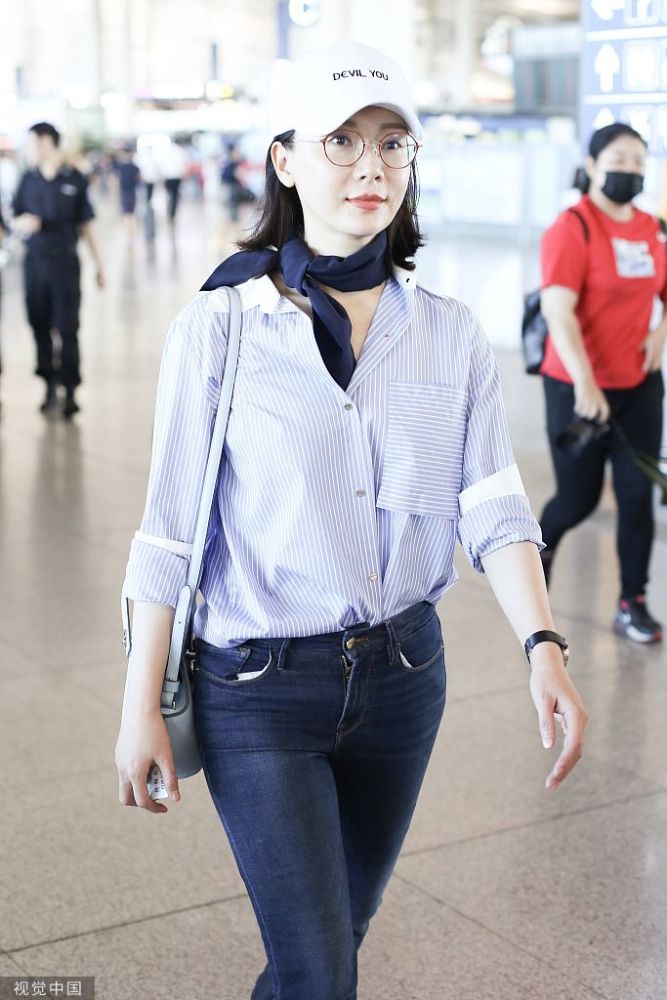 2019年6月30日,北京,陳數(shù)亮相機場,她身穿條紋襯衫搭配藍色方巾完美詮釋知性美,簡單造型非常耐看,已經(jīng)42歲的她皮膚也是亮白嫩滑,堪稱凍齡美人了。