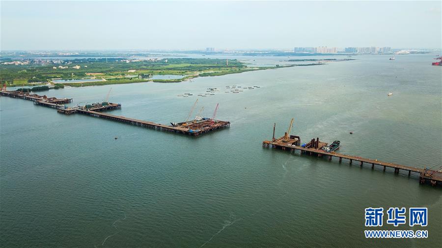 這是7月6日無人機拍攝的湛江調(diào)順跨海大橋建設(shè)現(xiàn)場。 新華社記者 劉大偉 攝
