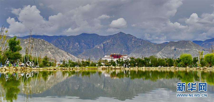 在南山公園湖畔拍攝的布達(dá)拉宮風(fēng)光(7月30日攝)。新華社記者 張汝鋒 攝