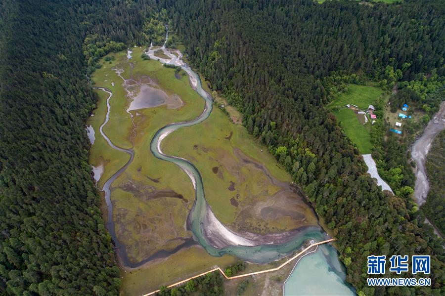 西藏林芝境內(nèi)森林深處的村莊(5月17日無人機(jī)拍攝)。