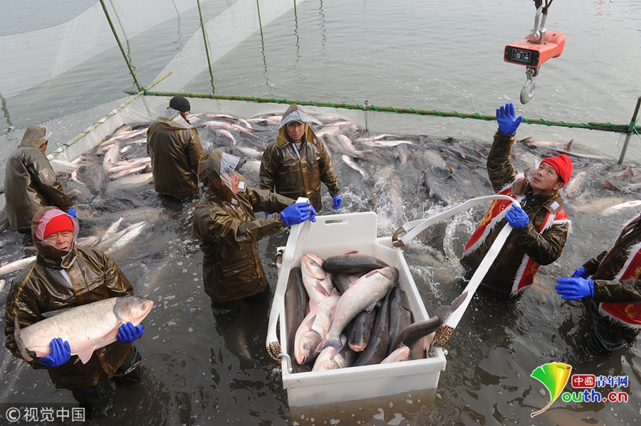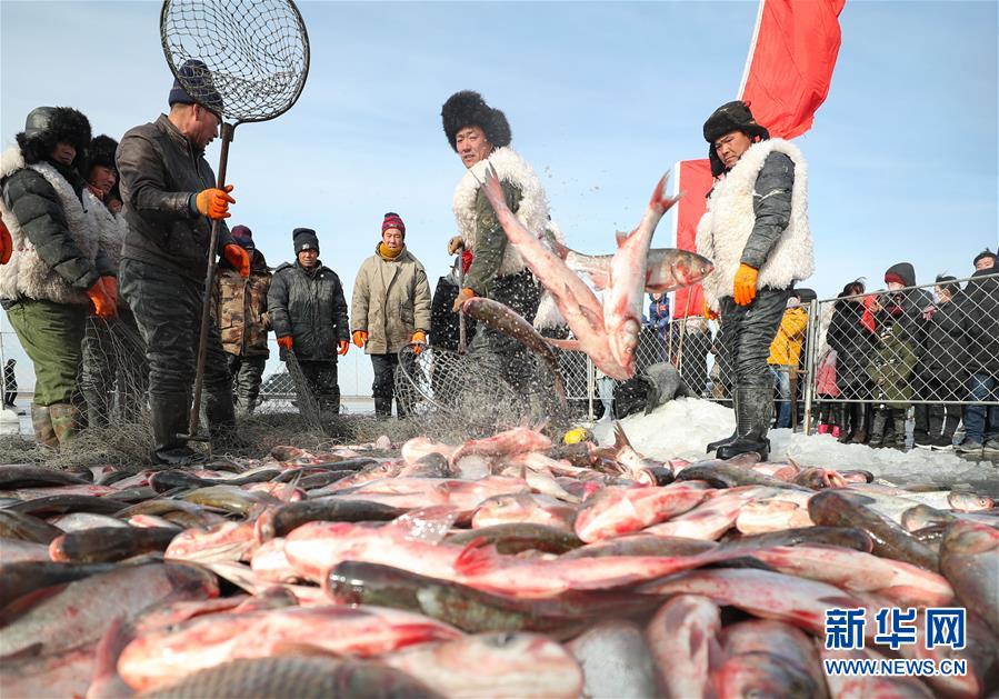 2018年12月26日,吉林松原,查干湖迎來了“紅網(wǎng)”,單網(wǎng)捕撈約30萬斤。