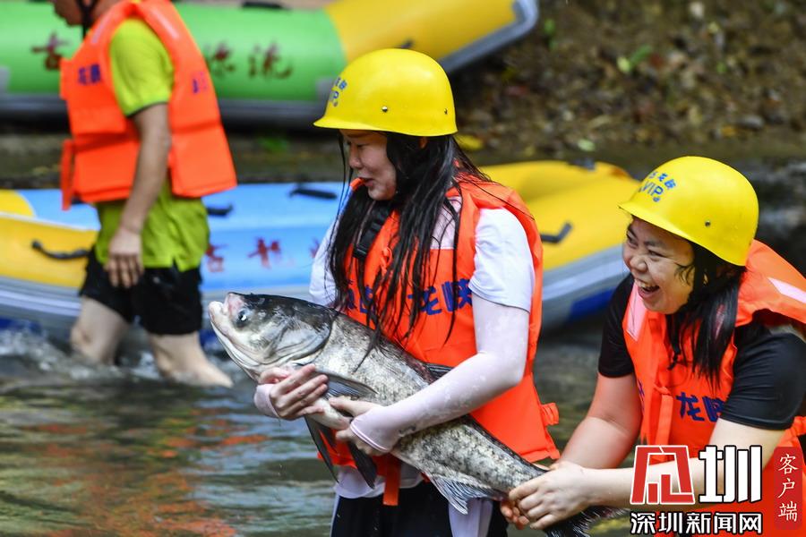 “韋帕”剛登陸廣東,清遠古龍峽漂流景區(qū)就開始泄洪,上萬斤水庫大魚隨著泄洪道“越獄”,引來上千名游客下艇捕魚,漂流河道上演了幾個小時的“人魚”大戰(zhàn),有的捕魚高手竟然捉了一漂流艇的魚回家。