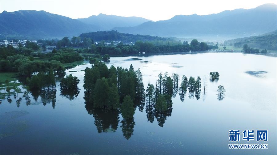 這是8月4日無人機拍攝的安徽黟縣宏村風景區(qū)月沼晨景。新華社記者 張端 攝