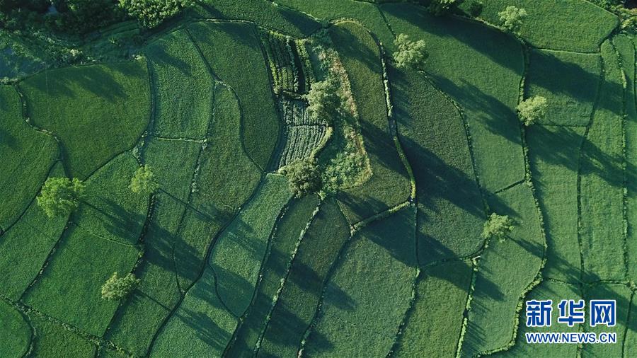 這是8月4日無人機拍攝的安徽黟縣宏村風景區(qū)附近的農(nóng)田。新華社記者 張端 攝