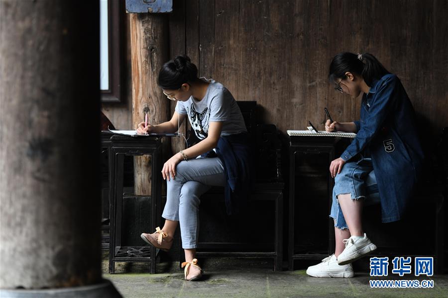 4月24日,繪畫愛好者在西遞風景區(qū)寫生。近日,隨著氣溫升高,位于安徽省黟縣的古村落西遞和宏村春意盎然,景色如畫。大批繪畫愛好者前來寫生,用畫筆描繪古村春色。 新華社記者 任鵬飛 攝