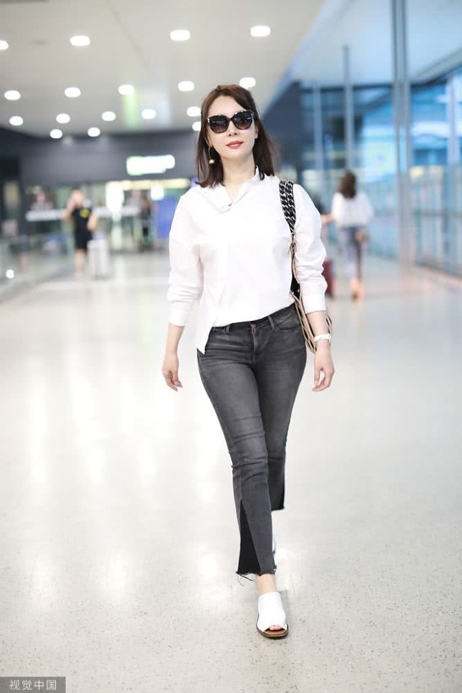 陳數(shù)穿白襯衫知性淺笑甜美迷人 架黑超拎漁網(wǎng)紋展職場女性魅力