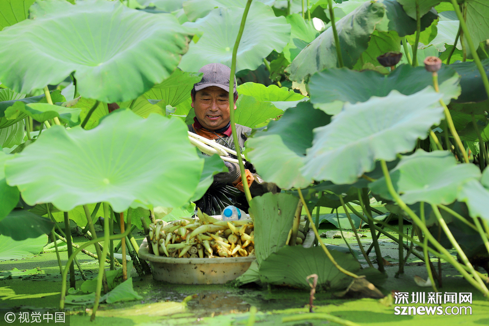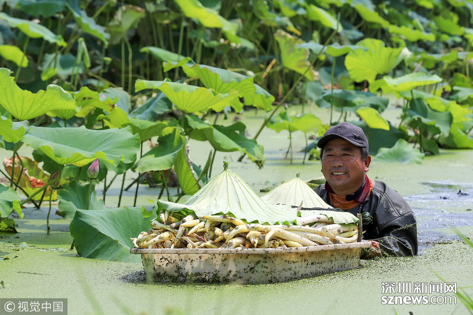 相關鏈接 烈日下的采藕人 每天采摘千斤荷藕