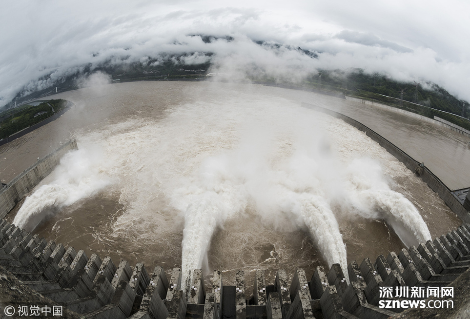2018年7月5日,三峽大壩今年首次開閘泄洪。當(dāng)天,三峽大壩開啟5個泄洪孔下泄洪水,至中午12點(diǎn)左右減至2個。