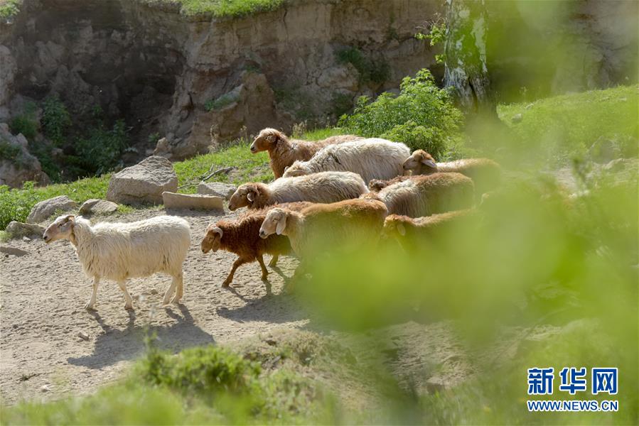 6月6日,轉(zhuǎn)場羊群行走在牧道上。新華社記者 丁磊 攝