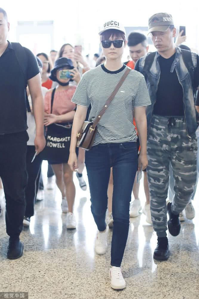 李宇春條紋裝扮現(xiàn)身機(jī)場,青春活力,人氣爆棚