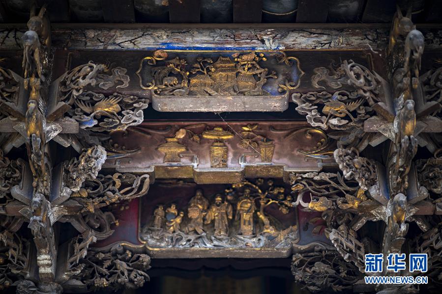 位于石屏縣異龍鎮(zhèn)符家營村一戶老屋中“修舊如舊”的房梁(8月8日攝)。新華社記者 江文耀 攝