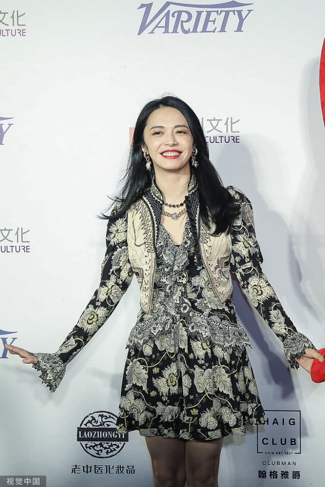 女演員姚晨亮相,穿黑白泡泡袖印花連衣裙,戴項(xiàng)鏈優(yōu)雅迷人
