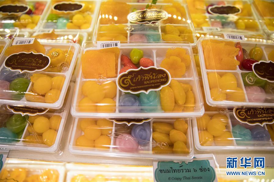 這是9月1日在泰國曼谷著名的“九姐妹甜點”店拍攝的泰國蛋黃花、蛋黃球和甜蛋絲等傳統(tǒng)甜點。新華社記者 張可任 攝