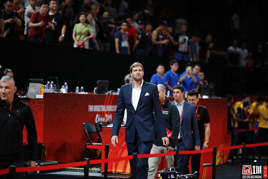 比賽結束后,德國籍球星諾維斯基來到現(xiàn)場。