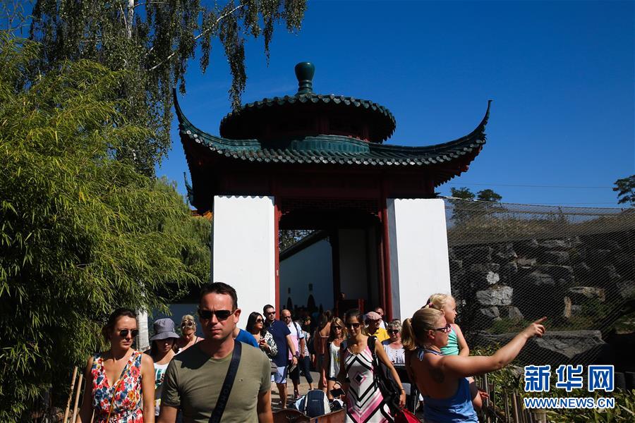 8月24日,在比利時(shí)布呂熱萊特市,游客參觀天堂動(dòng)物園的“中國園”。新華社記者鄭煥松攝