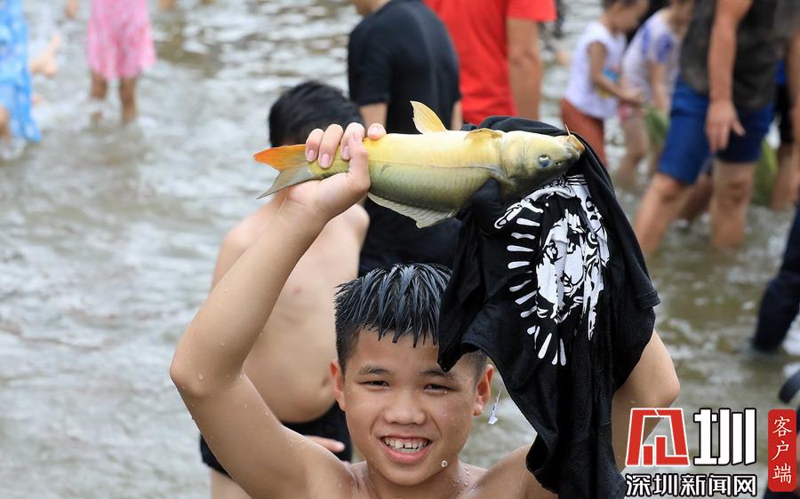 一名小朋友在“鬧魚”活動(dòng)中抓得一條活魚。