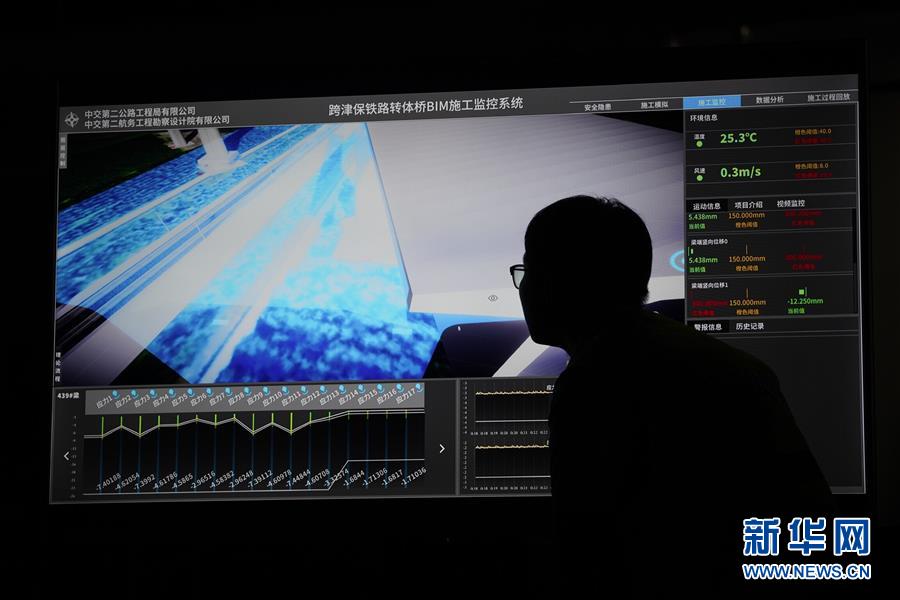 8月27日凌晨,施工人員在監(jiān)控橋梁轉(zhuǎn)體施工。新華社記者楊世堯攝