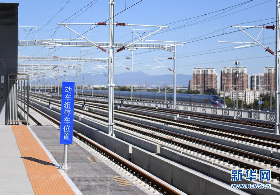 9月18日拍攝的京雄城際北京大興站站臺。新華社記者張晨霖?cái)z