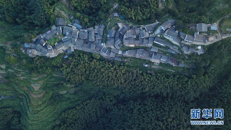 晨曦中的木梨硔村景色(9月18日無人機(jī)拍攝)。9月18日清晨,地處皖南山區(qū)的安徽省黃山市休寧縣木梨硔村沐浴在晨曦之中,靜謐祥和。新華社記者張端攝