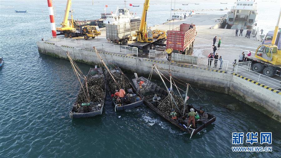 遼寧長海漁民打撈牡蠣 場面壯觀!