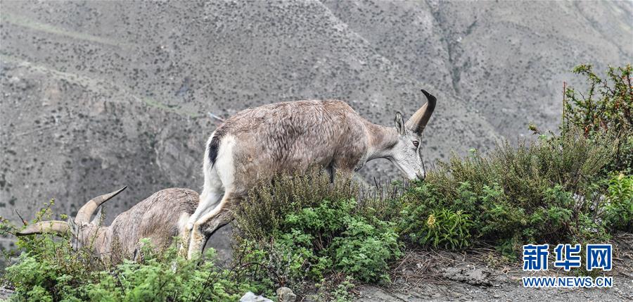 兩只巖羊在西藏山南市洛扎縣色鄉(xiāng)海拔4000米左右的盤(pán)山路邊,悠閑地吃著野果青草(9月22日攝)。 在西藏山南市洛扎縣色鄉(xiāng)海拔4000米左右的盤(pán)山路上,一群巖羊悠閑地吃著野果青草,完全不介意來(lái)往的車(chē)輛、行人和近在咫尺的鏡頭。 巖羊是國(guó)家二級(jí)保護(hù)動(dòng)物。近年來(lái),隨著西藏生態(tài)保護(hù)力度加大,巖羊數(shù)量不斷增加。 新華社記者 晉美多吉 攝