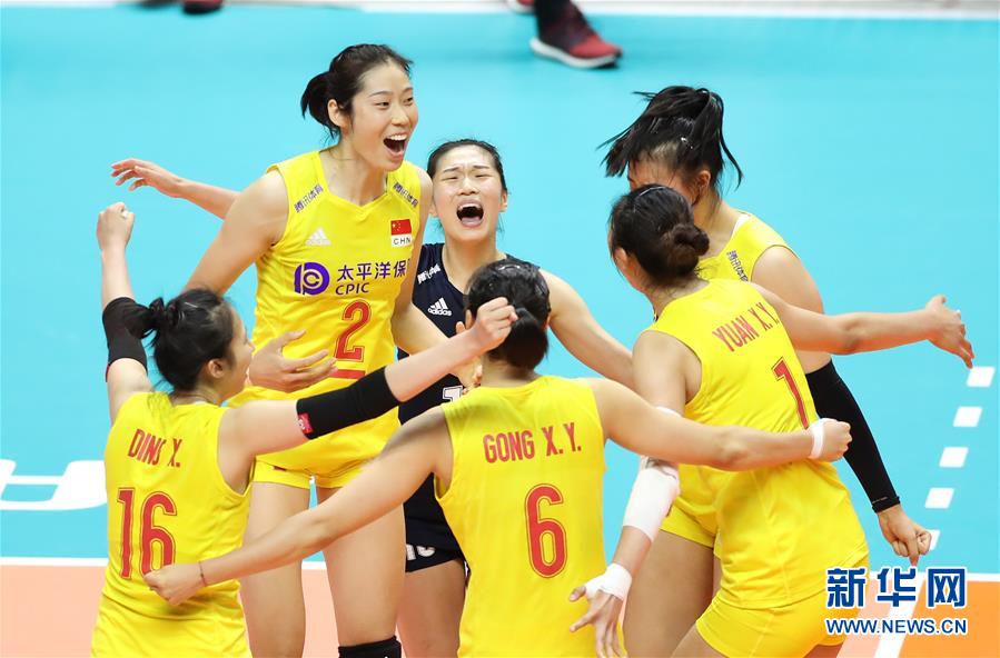 9月23日,中國隊球員在比賽中慶祝得分。當日,在日本札幌舉行的2019年女排世界杯賽第二階段A組循環(huán)賽中,中國隊以3比0戰(zhàn)勝美國隊。新華社記者杜瀟逸攝