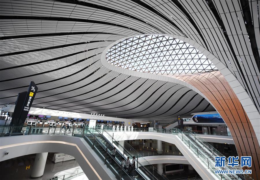 這是9月25日拍攝的北京大興國際機(jī)場航站樓內(nèi)部。新華社記者張晨霖攝