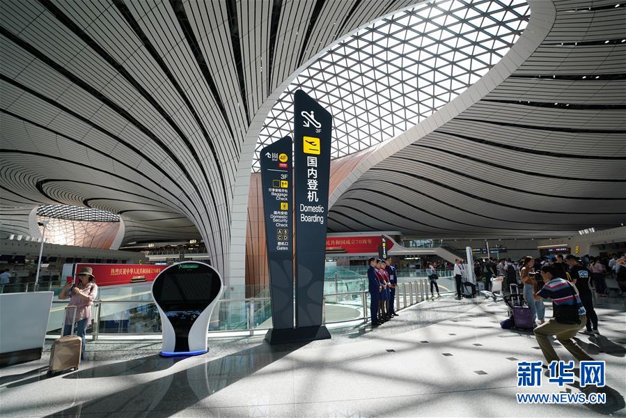 這是9月25日拍攝的北京大興國際機(jī)場(chǎng)航站樓內(nèi)部。新華社記者鞠煥宗攝