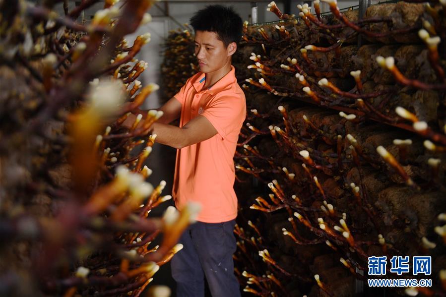 9月25日,在福建省南平市浦城縣一家靈芝加工企業(yè),技術員替精準扶貧戶管理靈芝。 近年來,福建省南平市浦城縣利用當?shù)鬲毺氐纳鷳B(tài)資源,依托特色靈芝產業(yè),發(fā)揮龍頭企業(yè)示范作用,通過公司+基地+貧困戶入股等方式,輻射帶動17個鄉(xiāng)鎮(zhèn)約300戶貧困戶增收。 新華社記者 宋為偉 攝