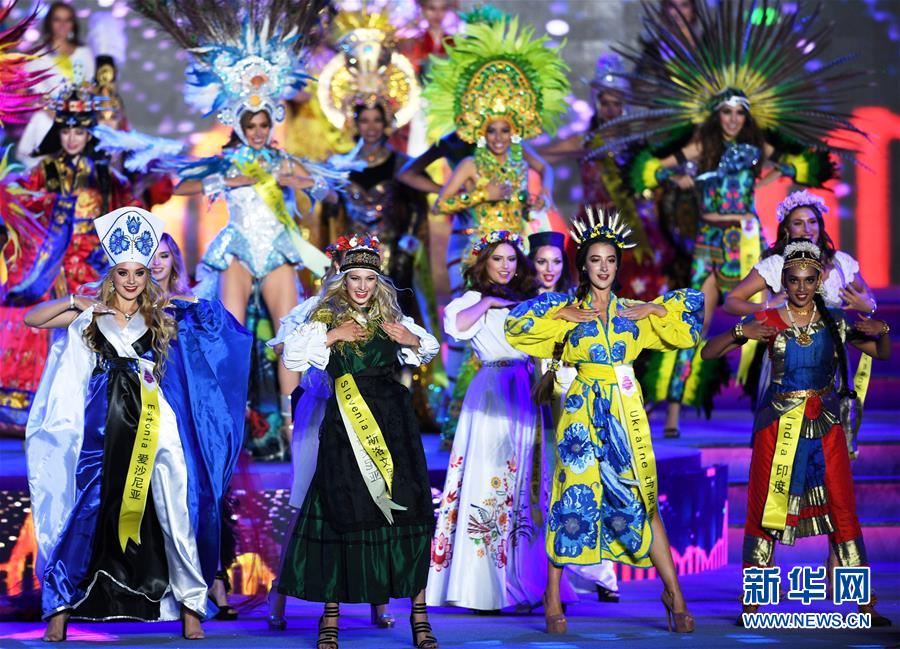 10月6日,選手在頒獎(jiǎng)儀式上。 10月6日晚,2019世界旅游小姐全球總決賽頒獎(jiǎng)盛典在山東青島舉行。來(lái)自67個(gè)國(guó)家和地區(qū)的佳麗在民族服裝、泳裝、晚裝以及才藝展示環(huán)節(jié)各展風(fēng)采,最終來(lái)自墨西哥和加拿大的兩名選手分獲冠亞軍,中國(guó)選手譚若依獲得季軍。 新華社記者 李紫恒 攝