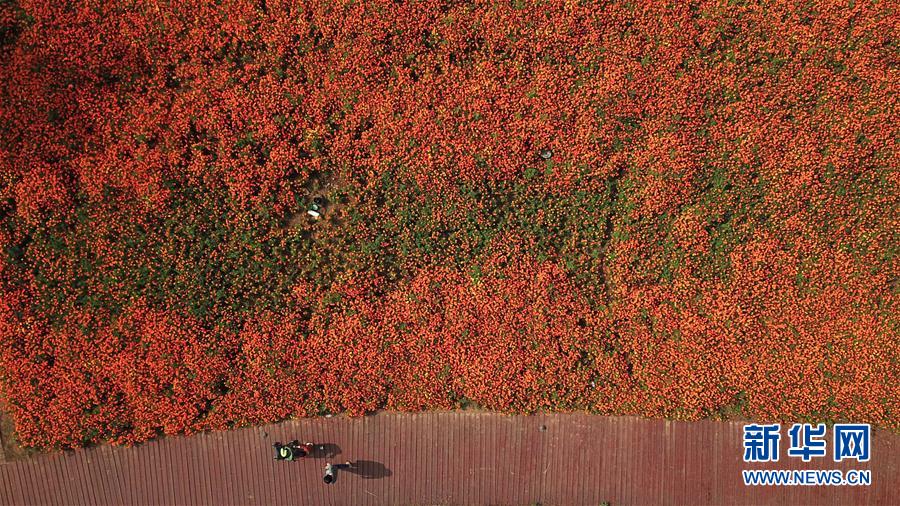 10月9日,游人在四季花海城市公園游覽(無(wú)人機(jī)拍攝)。 秋日時(shí)節(jié),位于安徽省合肥市的四季花海城市公園花香四溢,色彩繽紛,成為游客和市民休閑游玩的好去處。 新華社記者 張端 攝