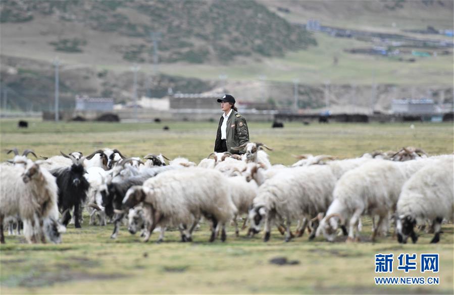 堅熱益西在自家牧場放羊(7月13日攝)。新華社記者普布扎西攝