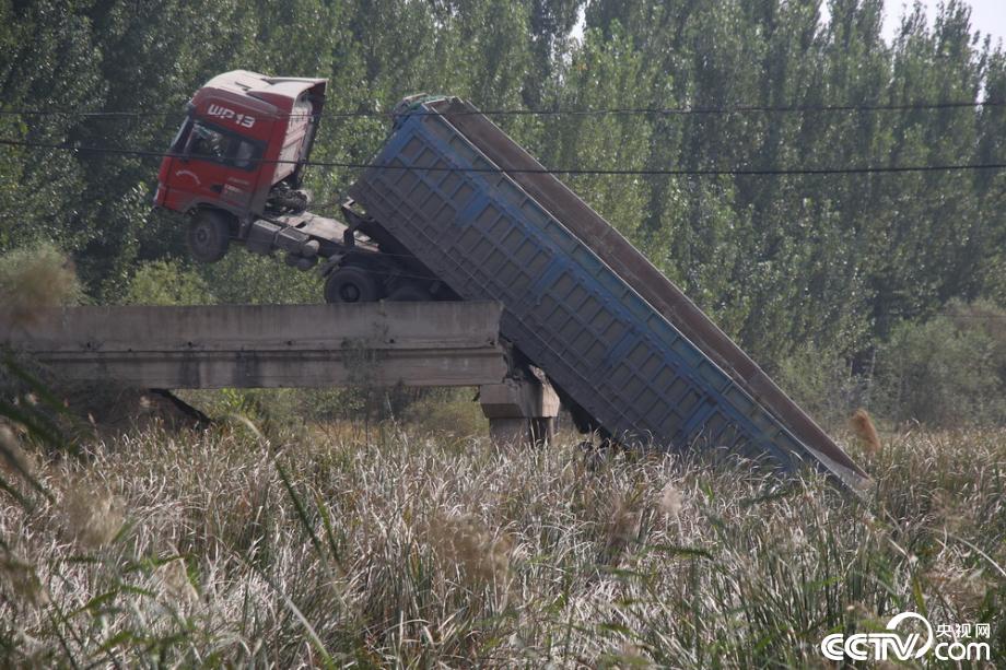 央視網(wǎng)消息:2019年10月13日,山東濱州,一輛滿載貨物的大貨車路過當?shù)匾蛔鶎?米左右的小橋時,致使橋面坍塌。據(jù)報道,13日凌晨4點左右,一輛重型半掛貨車沿渤海十八路由南向北行駛至市西辦事處李茂家村附近,右轉(zhuǎn)彎進入連接渤海十八路與李茂家村村西鄉(xiāng)間路的一座寬4米左右的小橋時,致使橋面坍塌?,F(xiàn)場貨車呈翹起之勢,車頭懸于半空中,車尾插入水中,事故未造成人員傷亡。據(jù)現(xiàn)場了解,該橋建設(shè)于1974年,橋頭有警示標識,警示承載4噸。目前救援工作正在緊張有序地進行中。視覺中國