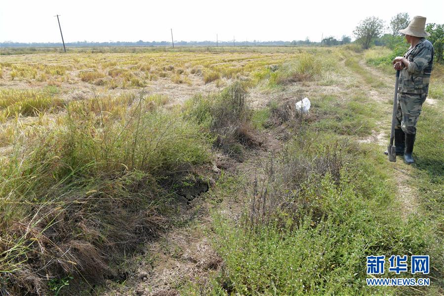 江西省南昌市南昌縣蔣巷鎮(zhèn)一農(nóng)戶在田里查看中稻的收割情況和晚稻的生長情況,農(nóng)田兩側(cè)的水渠已干涸多日(10月10日攝)。 7月下旬至10月初,江西省平均降雨量為96毫米,比多年均值偏少約七成,排歷史同期倒數(shù)第一位,持續(xù)的少雨天氣導(dǎo)致江西省主要江河水位持續(xù)走低,多地出現(xiàn)不同程度的旱情。 針對當(dāng)前旱情,江西各地紛紛采取措施,積極組織群眾開展抗旱自救,力爭將旱情帶來的損失降到最低。 新華社記者 彭昭之 攝