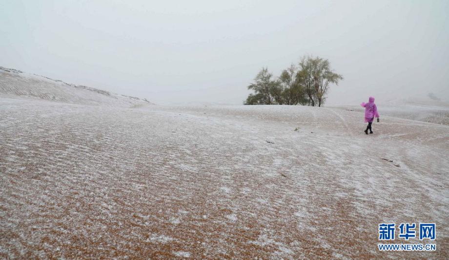 10月15日,游客在寧夏中衛(wèi)市沙坡頭景區(qū)欣賞沙漠雪景。深秋時節(jié),位于騰格里沙漠邊緣的寧夏中衛(wèi)市沙坡頭景區(qū)迎來一場降雪。漫漫黃沙被覆蓋在皚皚白雪之下,呈現(xiàn)出一種別樣的美。新華網(wǎng)杜文杰攝