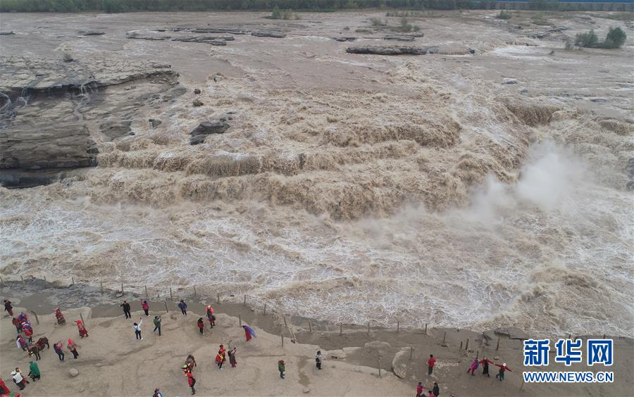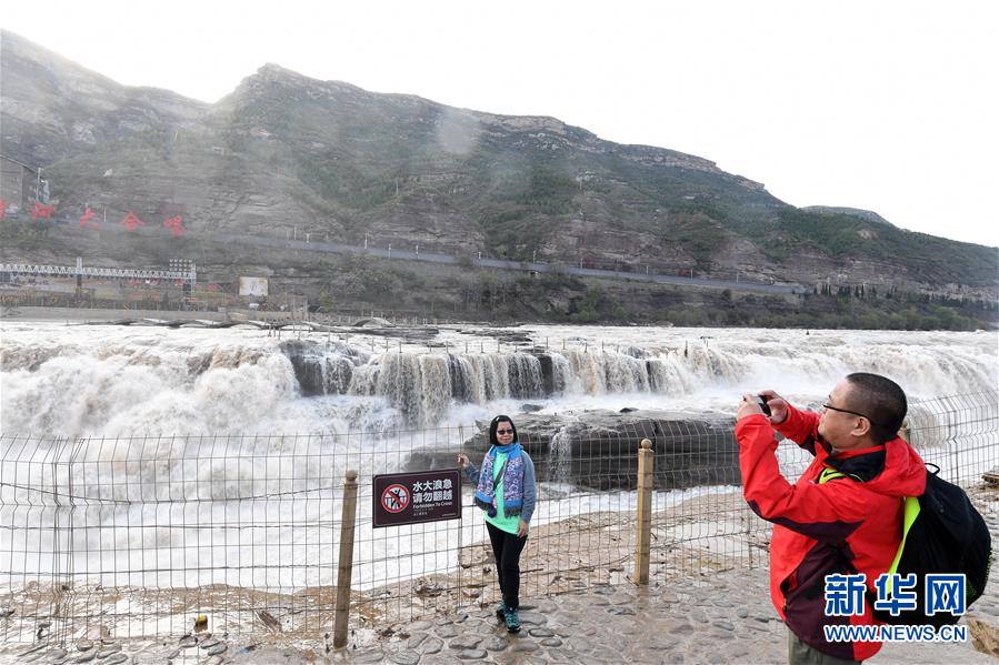 受近日降雨影響,位于山西吉縣的壺口瀑布水量增大,壯美的瀑布群景觀吸引眾多游客前來(lái)觀賞。新華社記者楊晨光攝