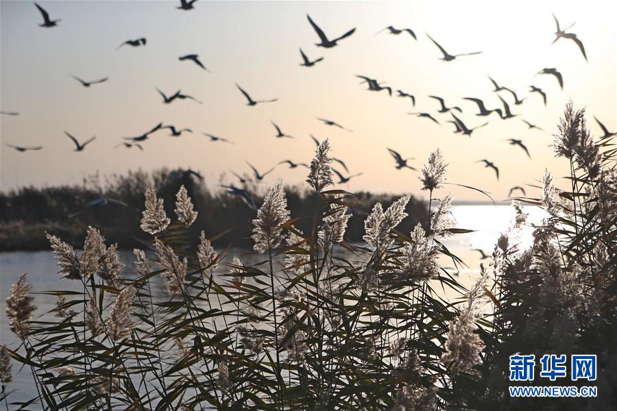 居延海位于內(nèi)蒙古阿拉善盟額濟(jì)納旗北部,是我國第二大內(nèi)陸河黑河的尾閭湖。其形狀狹長彎曲,猶如新月,額濟(jì)納河匯入湖中。2003年以來,隨著黑河分水工程的實(shí)施,干涸已久的東居延海湖盆重現(xiàn)碧波蕩漾的美景,煥發(fā)出勃勃生機(jī)。 新華社記者 彭源 攝