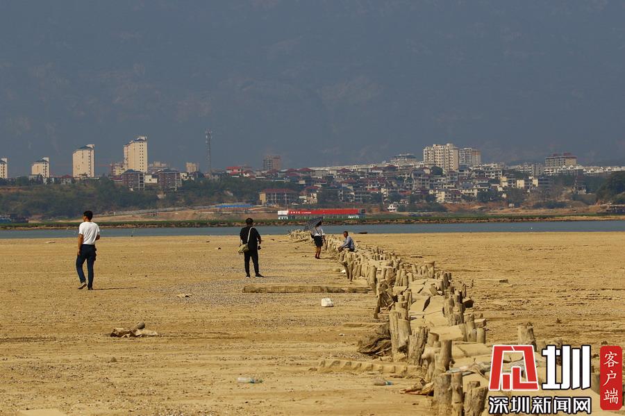 江西九江,隨著水位持續(xù)下降,豐水期浸泡在鄱陽(yáng)湖底被譽(yù)為“中國(guó)最長(zhǎng)的湖中古木石橋”露出水面。