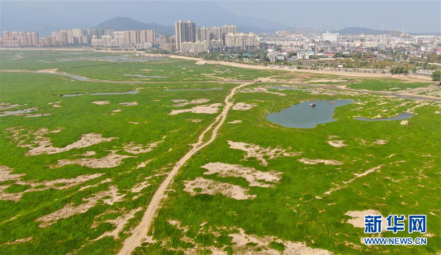 這是江西省廬山市鄱陽湖湖區(qū)干涸的情況(10月9日無人機(jī)拍攝)。新華社記者胡晨歡攝