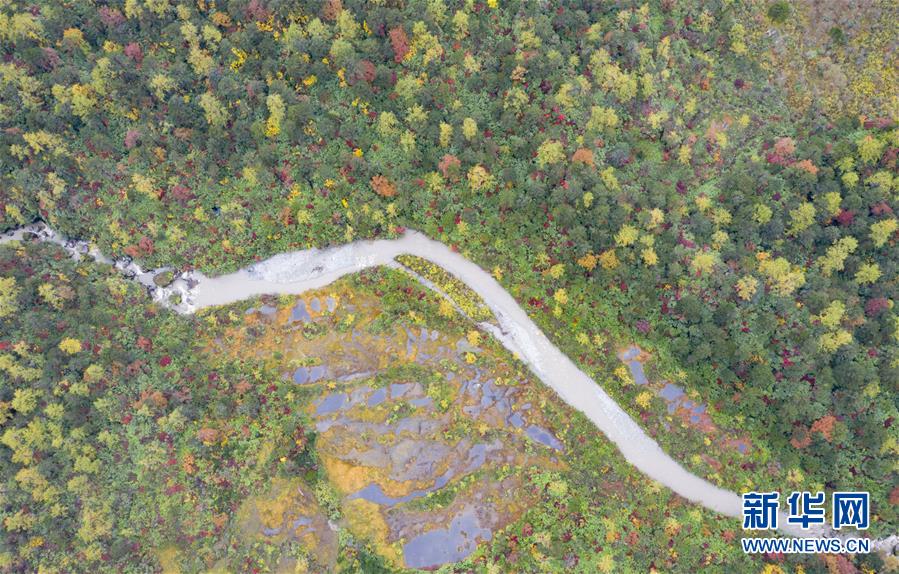 派墨公路沿線秋色(10月24日無人機拍攝)。 正在修建的派墨農(nóng)村公路起點位于西藏林芝市米林縣派鎮(zhèn),將通往墨脫縣解放大橋,公路沿線的深秋景色優(yōu)美如畫。 新華社記者 普布扎西攝
