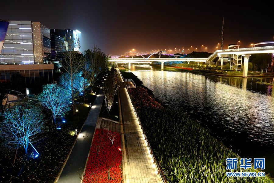 10月25日晚在國家會展中心(上海)附近拍攝的北橫涇夜景。新華社記者張建松攝